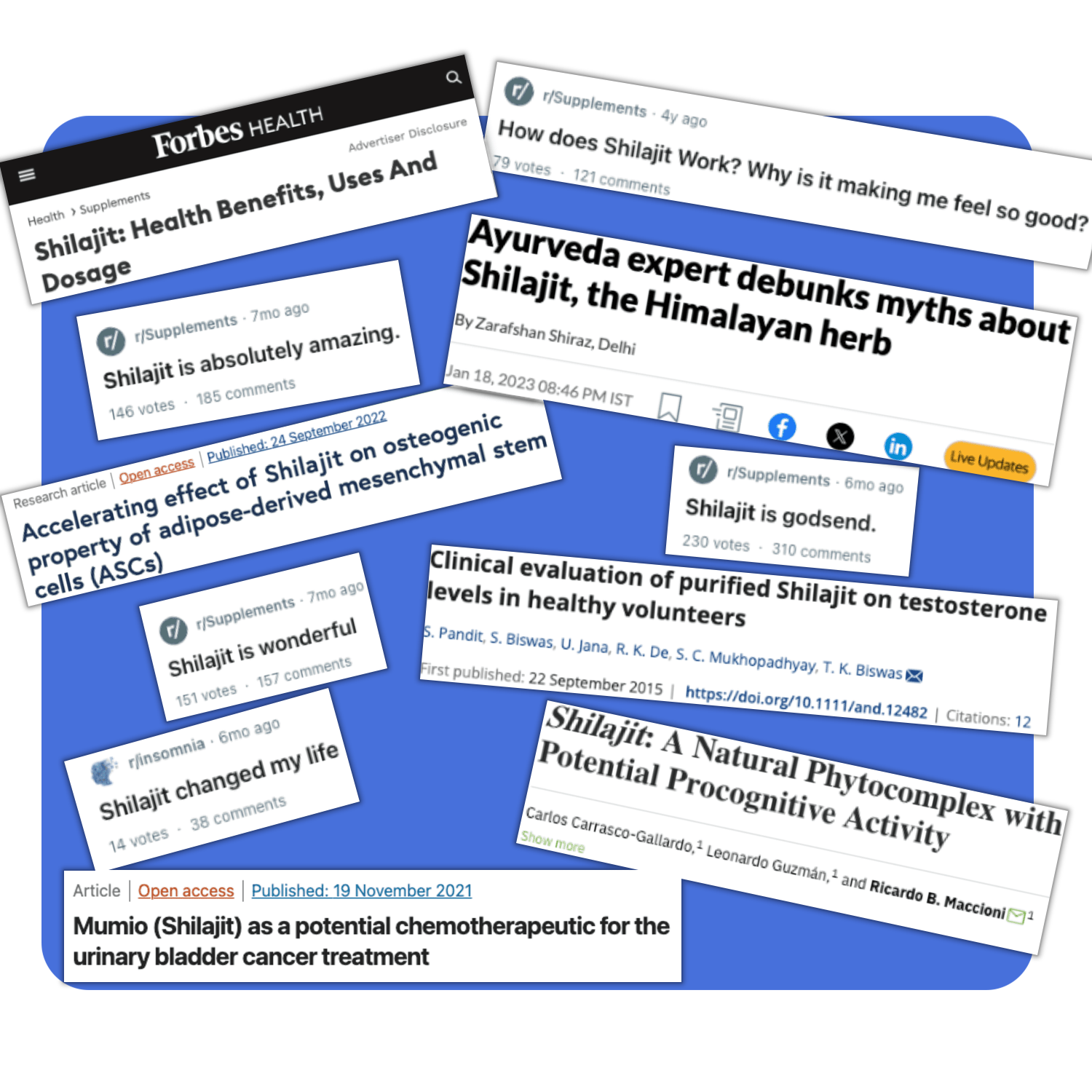 SHILAJIT — Meet the ancient wellness secret that Asians and Eastern alchemists have been using to perfect the body and mind for over 3000+ years. It forms from the slow decomposition of plants in the Himalayas over centuries. Backed by years of scientific research, Shilajit is a naturally rich supplement with 85+ minerals, fulvic acid, humic acid, amino acids, antioxidants, and bioactive elements. You can say it has endless benefits for your health and overall well-being.