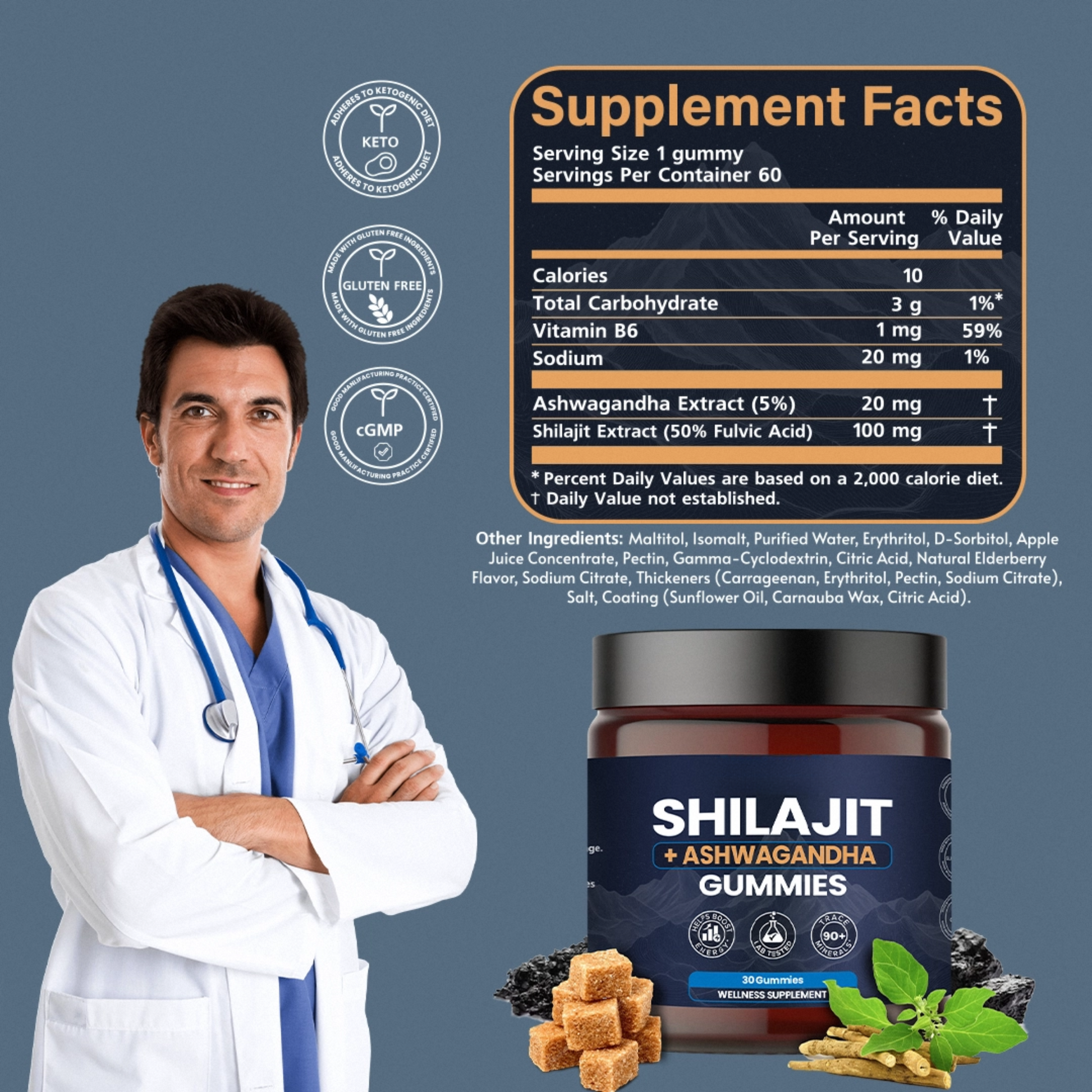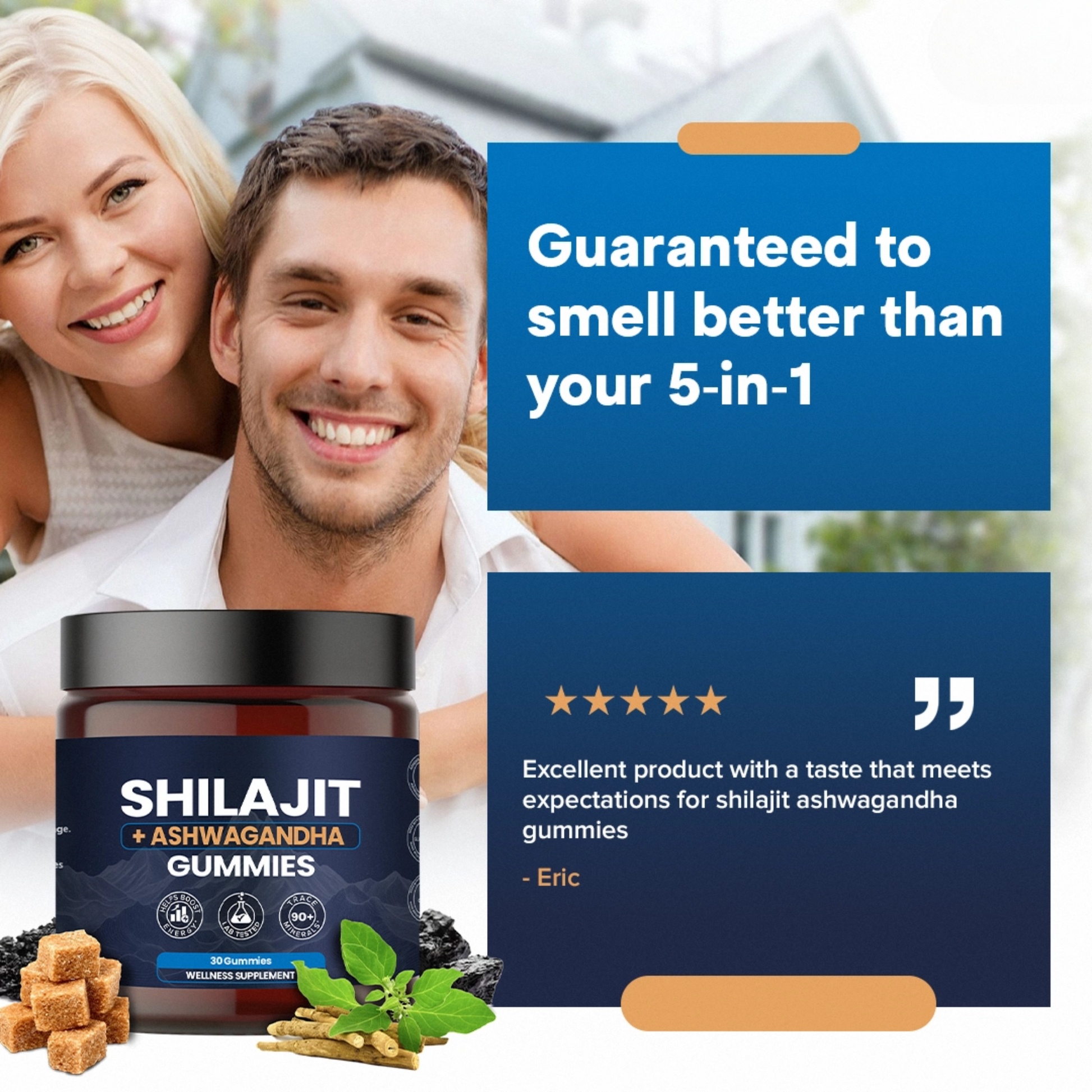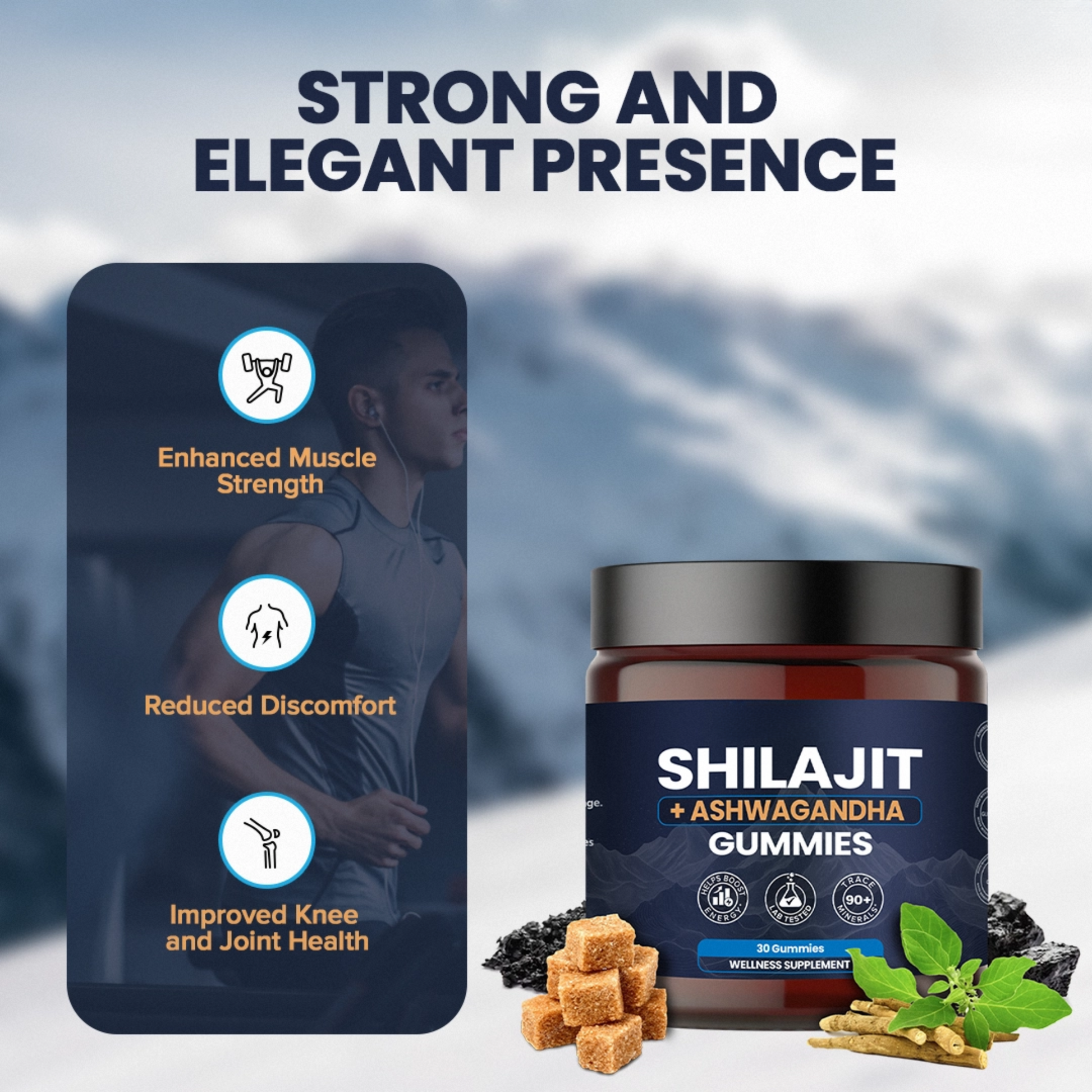 Our Pure Himalayan Shilajit and Ashwagandha supplement gummies contain over 85 trace minerals and are rich in fulvic and humic acid. It’s bioactive elements provide a comprehensive single-dose solution filled with iron, iodine, copper, zinc, magnesium, potassium and more. Contains natural properties that can boost stamina, help men and women live every moment with energy.