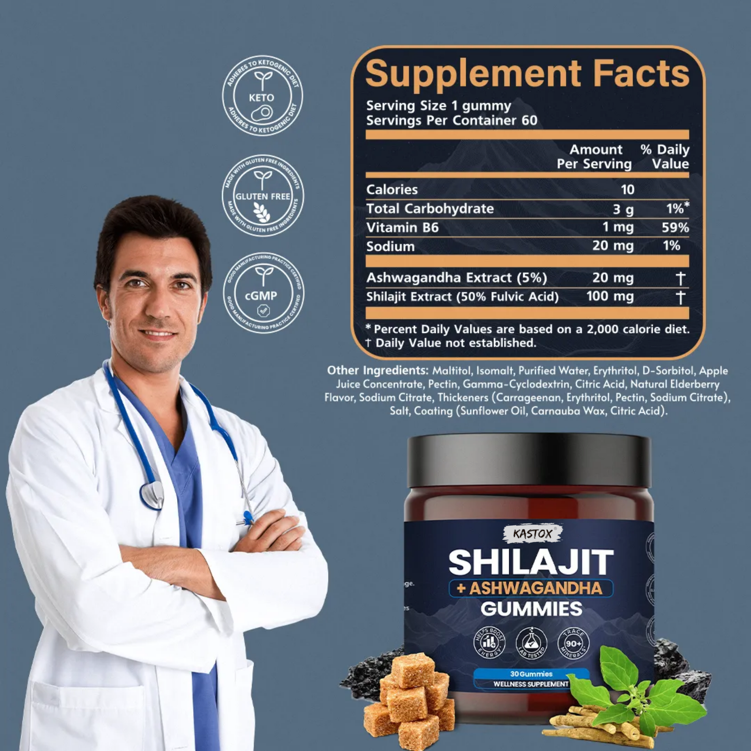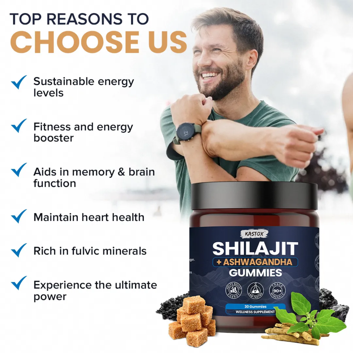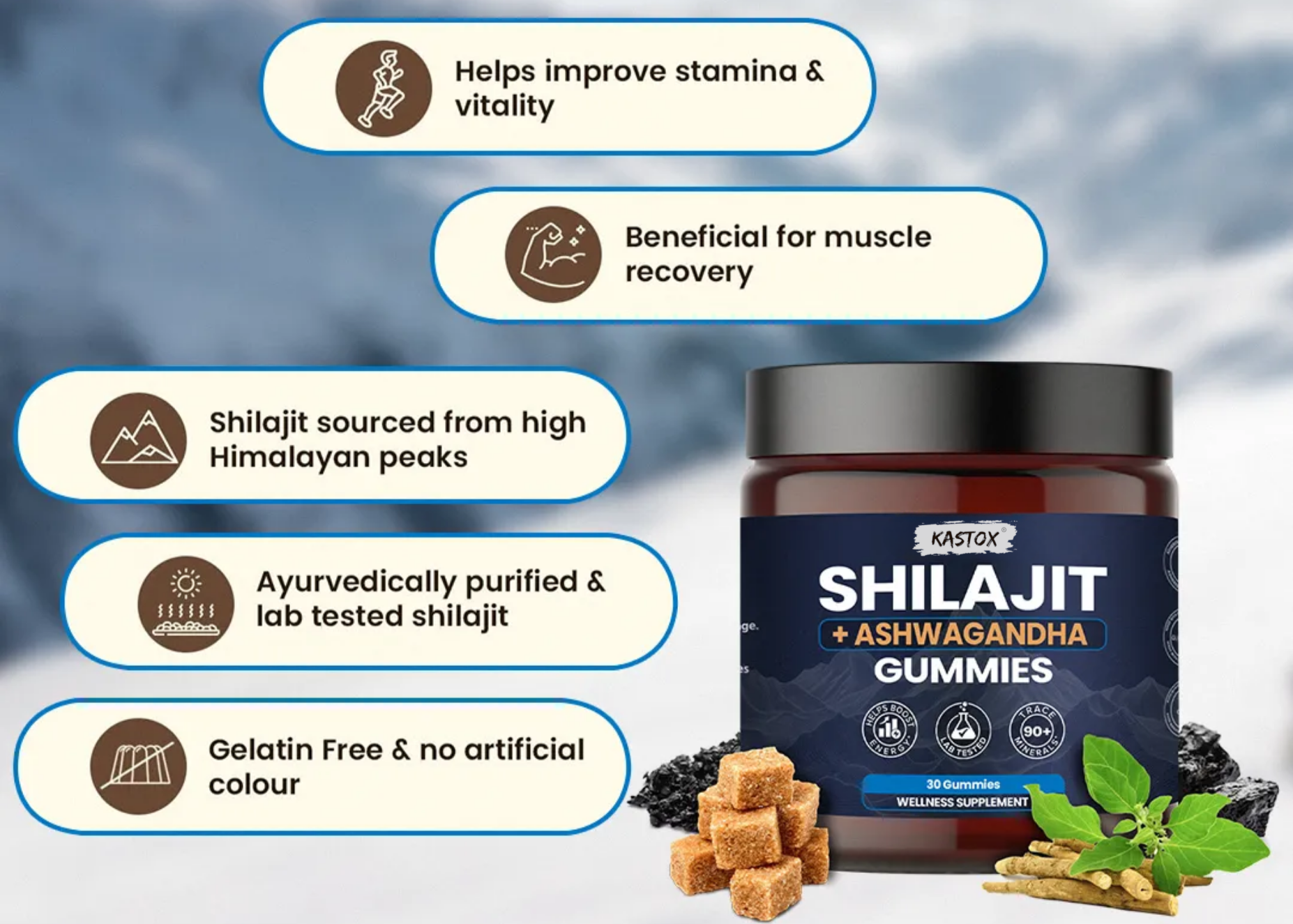 KASTOX SHILAJIT & ASHWAGANDHA 2 IN 1 WELLNESS GUMMIES