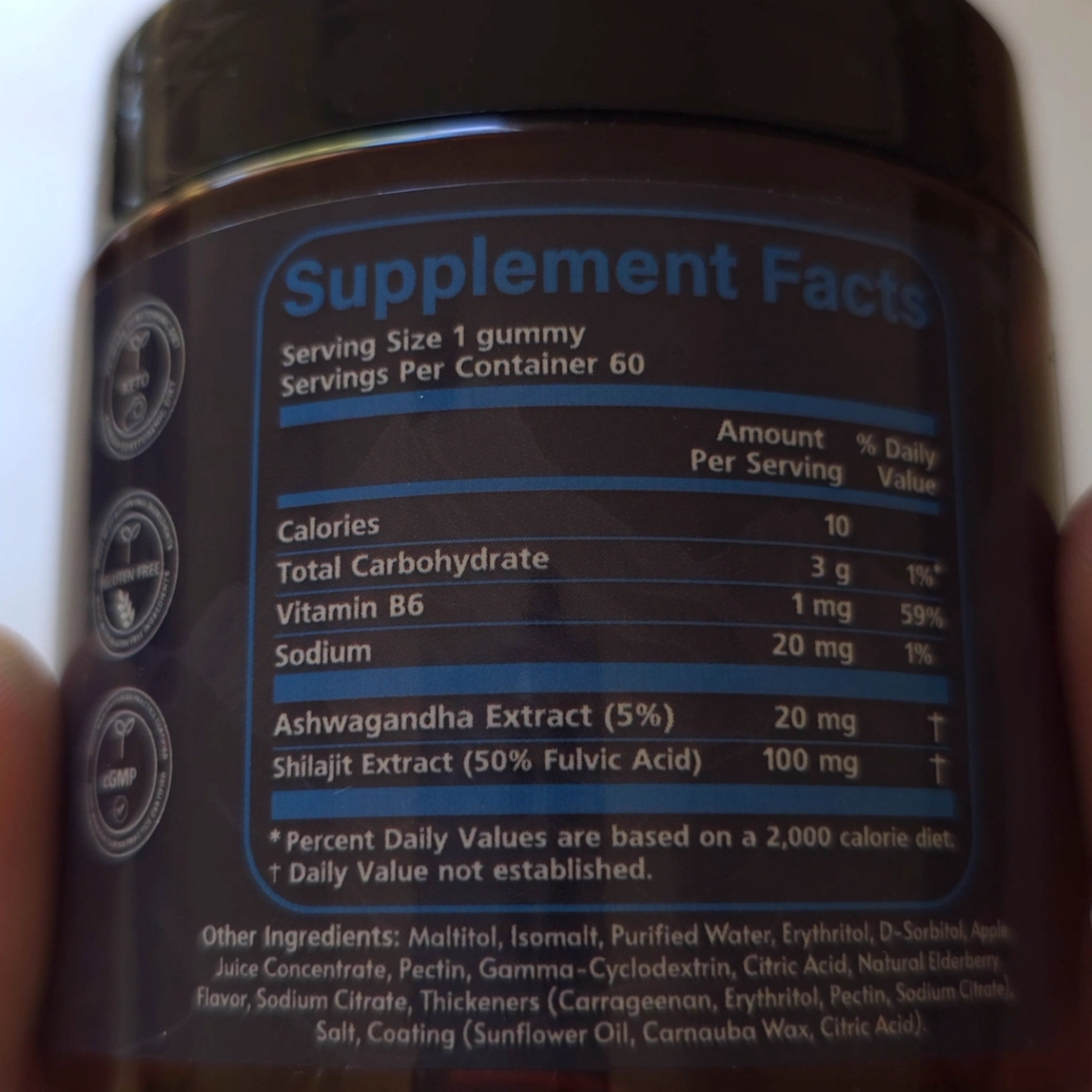 Our Pure Himalayan Shilajit and Ashwagandha and Seamoss supplement gummies contain over 85 trace minerals and are rich in fulvic and humic acid. It’s bioactive elements provide a comprehensive single-dose solution filled with iron, iodine, copper, zinc, magnesium, potassium and more. Contains natural properties that can boost stamina, help men and women live every moment with energy.