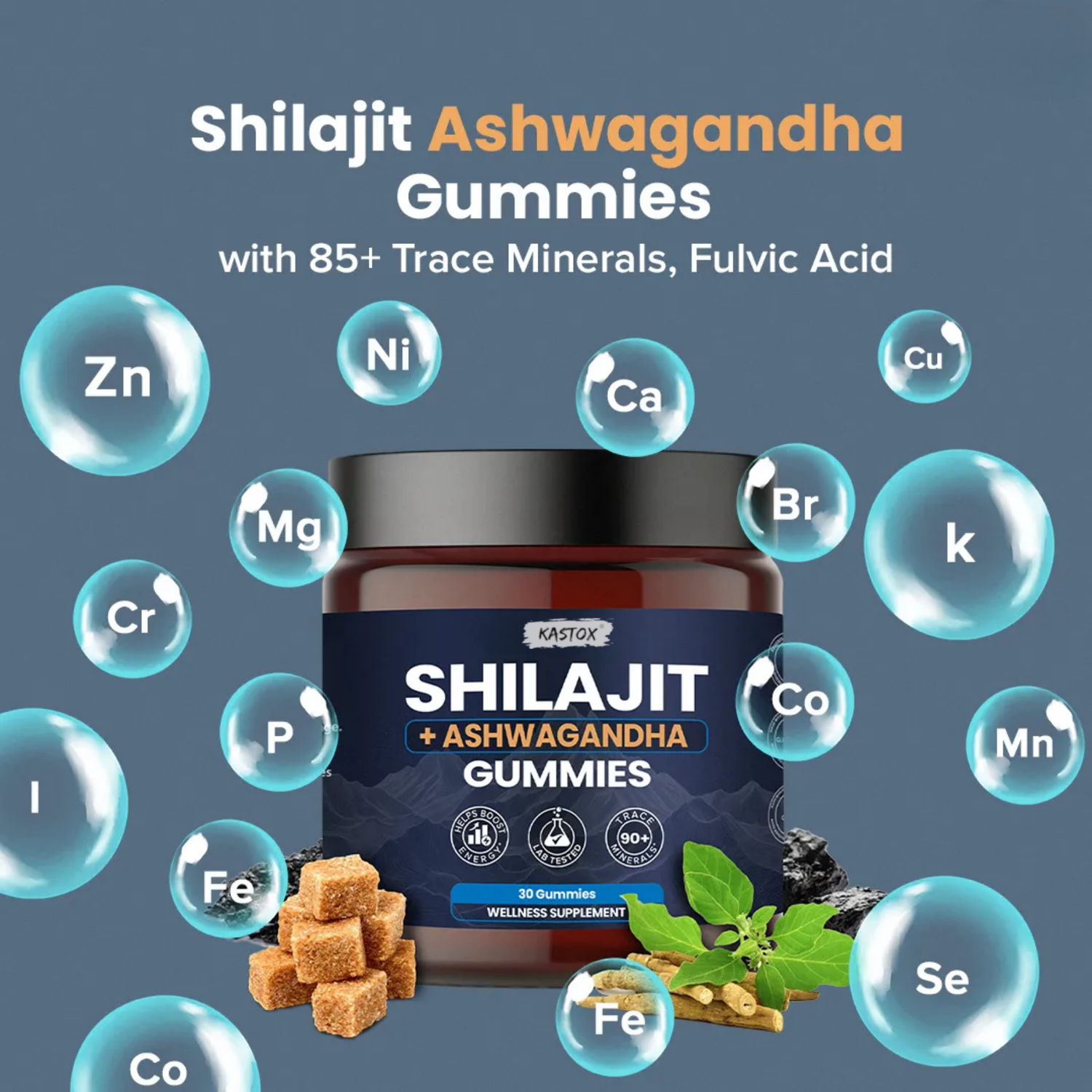 Shilajit Gummies: Boost energy, improve stamina, and enhance focus with over 80 minerals and fulvic acid.