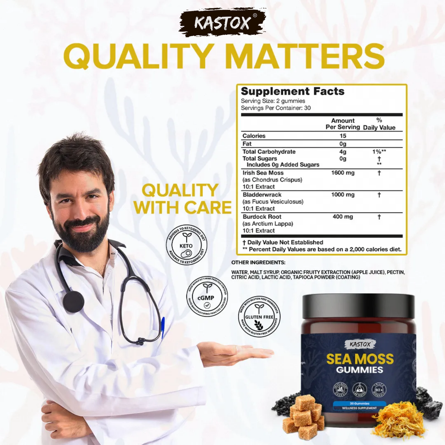 Sea Moss Gummies: Strengthen your immune system, improve skin health, and provide essential nutrients like iodine, zinc, and magnesium.